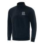 Made with our new, ridiculously soft brushed heather fabric, this 1/4 zip pullover will provide you with a layer of warmth on and off the course. Subtle 1/4 Zip Pullover is 91% polyester/9% spandex signature buffed fleece (260gsm) with an 8-inch zipper with covered placket dyed to match the tipped plastic zipper pull. Also features a self-fabric cuff and hem, and Antigua 'A' at right cuff.